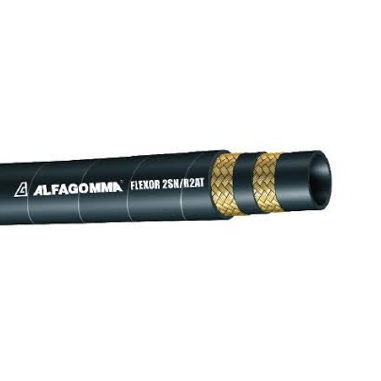 La manguera Alfagomma 1/4 Flexor 2SN/1AT soporta aplicaciones de alta presión gracias a su cubierta de caucho sintético resistente a la abrasión y sus trenzas de acero extensibles.